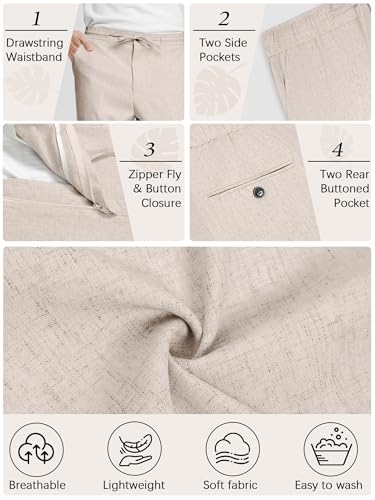 Men's Casual Pants Linen Drawstring Elastic Waist Loose Fit Men Dress Pants Summer Travel Beach Yoga Jog Trouser 4