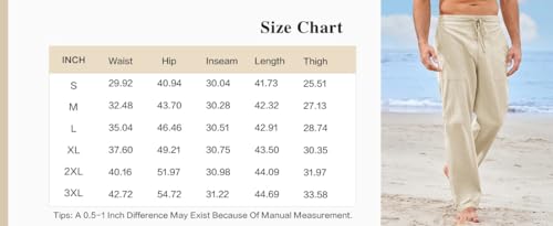 More information about Mens Casual Linen Pants Loose Fit Elastic Drawstring Waist Summer Straight-Legs Yoga Beach Long Pants