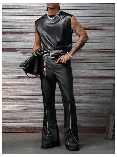 More information about Men's PU Leather Pants Y2K Flare Leg Baggy Pants Half Zip Decor Party Rave Trousers Clubwear