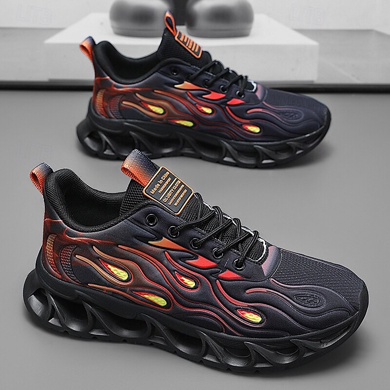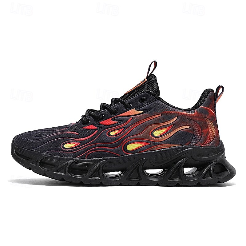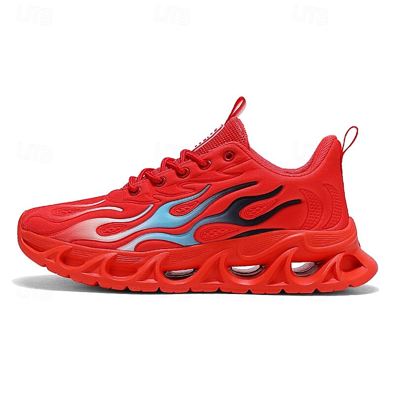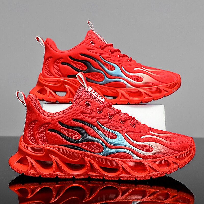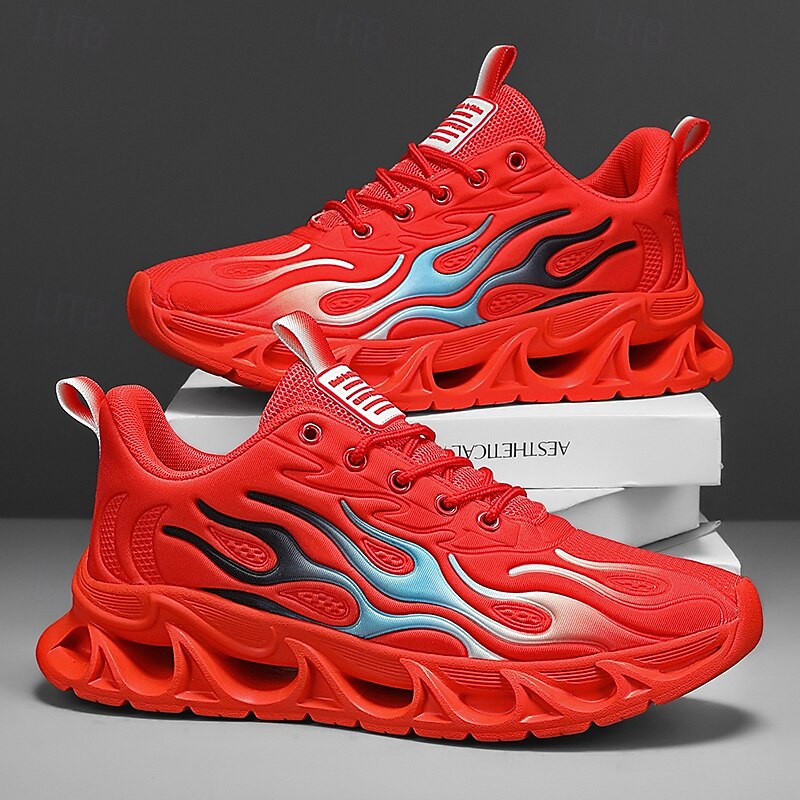 Men's Red Running Shoes with Flame Detailing, High-Performance Mesh Upper and Shock-Absorbing Sole, Perfect for Workouts, Sports Events and Active Lifestyles 36