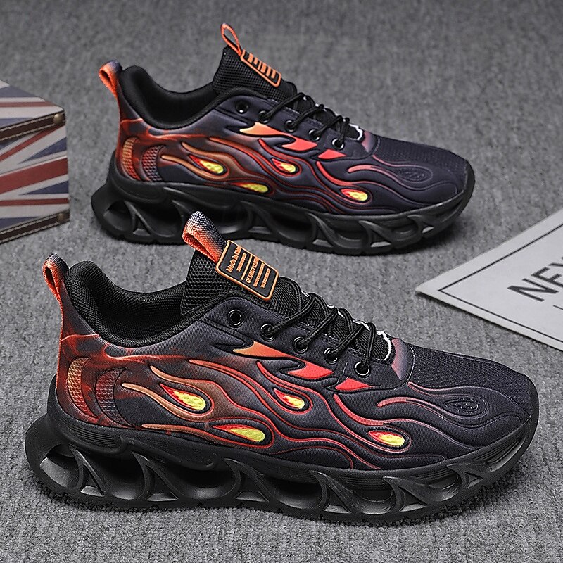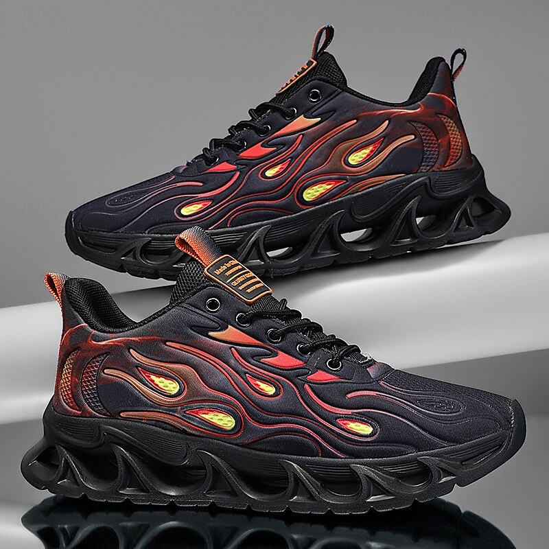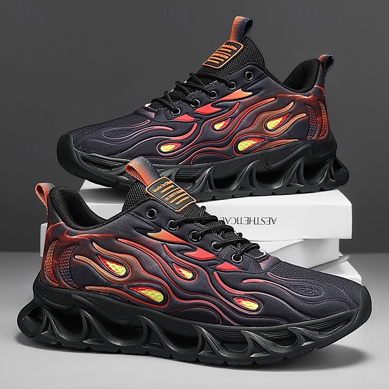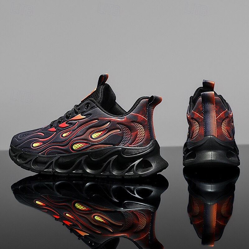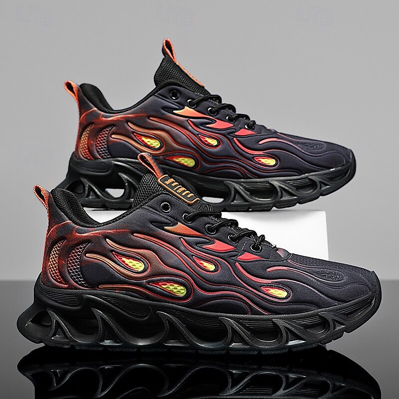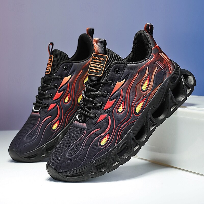 Men's Red Running Shoes with Flame Detailing, High-Performance Mesh Upper and Shock-Absorbing Sole, Perfect for Workouts, Sports Events and Active Lifestyles 36