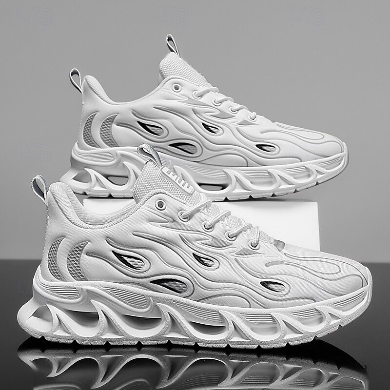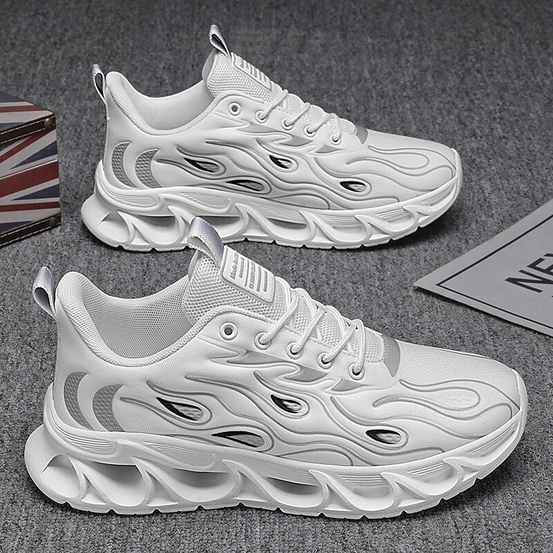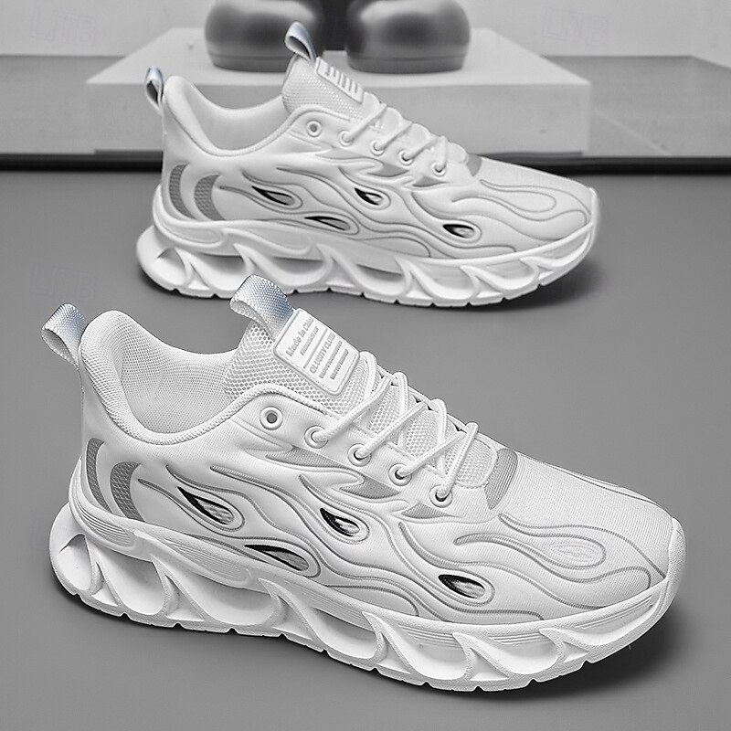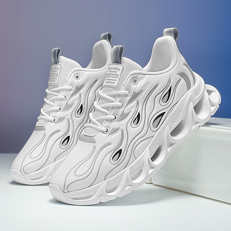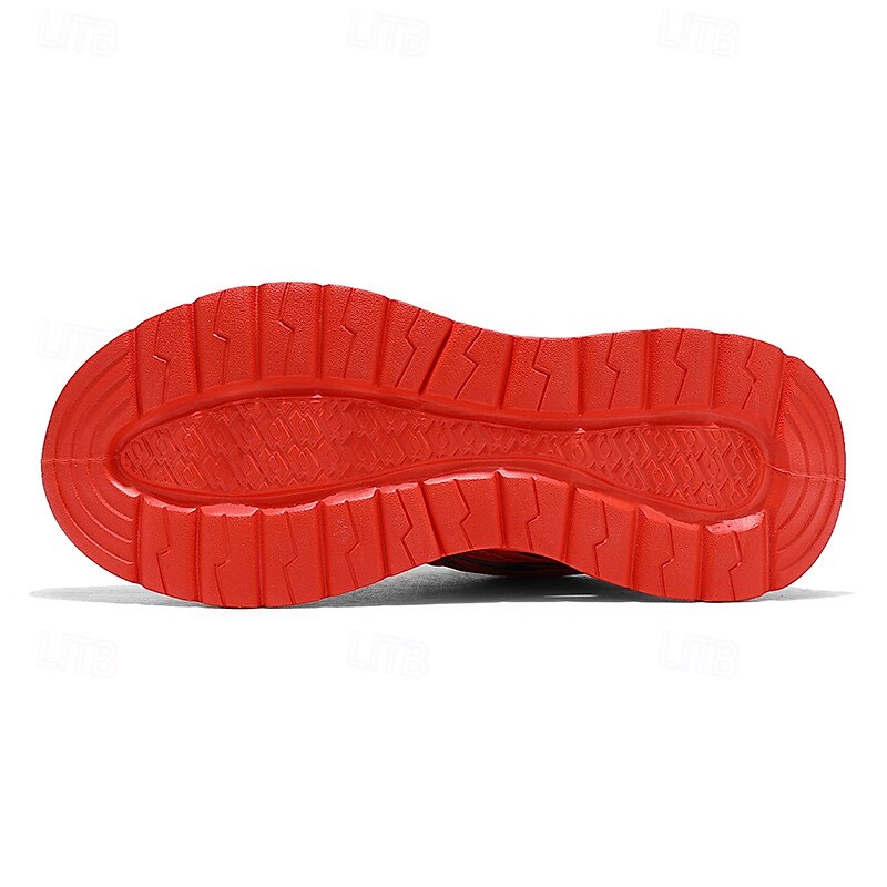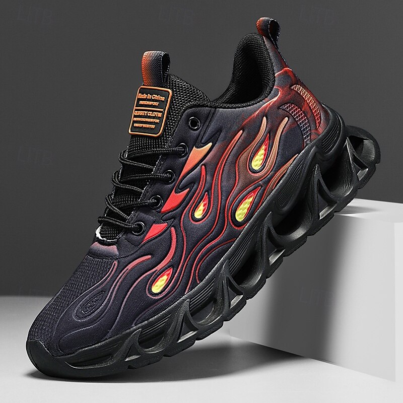 HOT ! Men's Red Running Shoes with Flame Detailing, High-Performance Mesh Upper and Shock-Absorbing Sole, Perfect for Workouts, Sports Events and Active Lifestyles