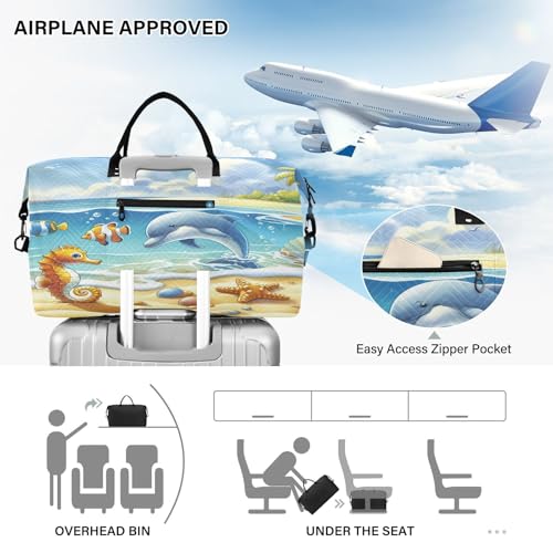 HOT ! ​​Large Foldable Travel Duffel Bag, Waterproof Gym Bag for Men & Women, Carry-On Luggage Weekender Overnight Bag, Sunny Beach Sea Animal