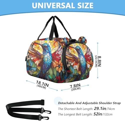 Travel Duffle Bag for Kids Boys Girls Hummingbird Bird Iridescent Wings Sports Bag Overnighter Duffle Sleepover Weekender with Shoes Compartment 7