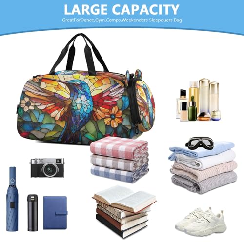 Travel Duffle Bag for Kids Boys Girls Hummingbird Bird Iridescent Wings Sports Bag Overnighter Duffle Sleepover Weekender with Shoes Compartment 5