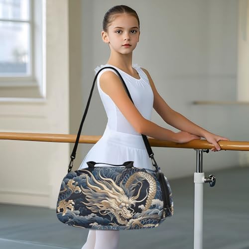 HOT ! Gold Dragon Pattern Duffle Bag for Girl, Sports Duffle Gym Bags with Shoe Compartment, Personalized Overnight Bag Travel Weekender for Kids