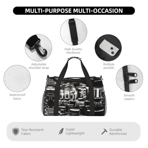 Barber Shop Monochrome Style print Weekender Overnight Carry On Bag Gym Luggage Bag Duffel Bag for Travel Women 7