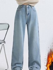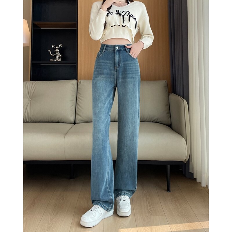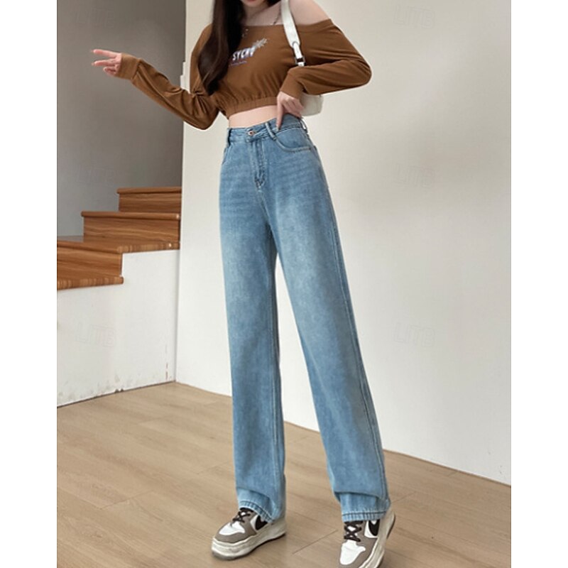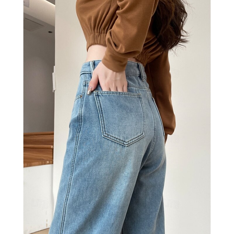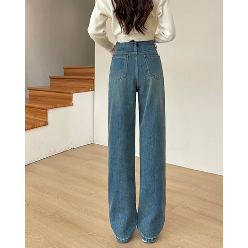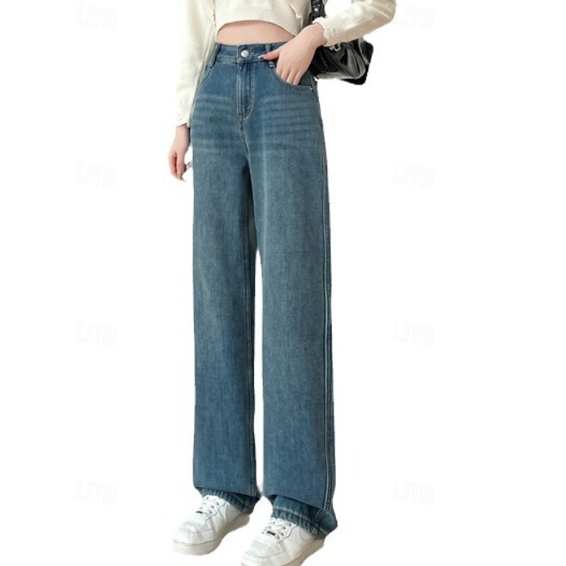 More information about Women's Jeans Wide Leg Chinos Vacation Vintage Streetwear Full Length Medium Waist Plain Pocket Elastic Waist Warm Inelastic Micro-elastic Outdoor Vacation Street Deep Blue Light Blue Summer Spring