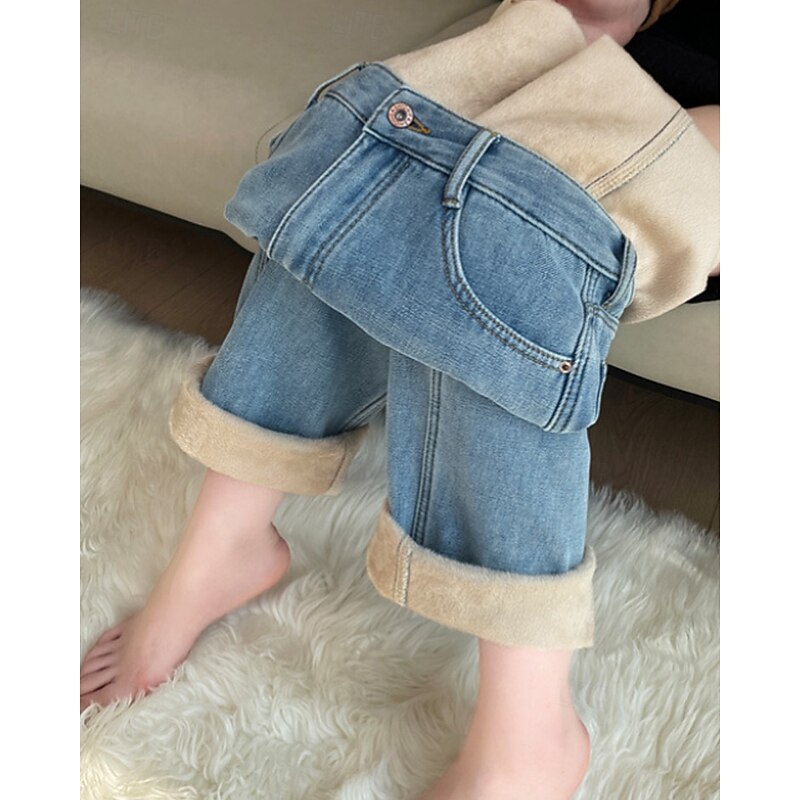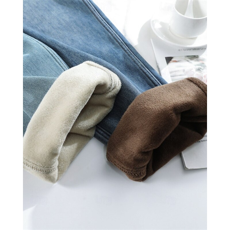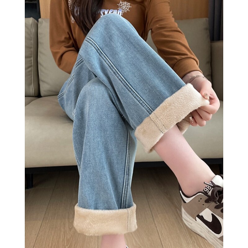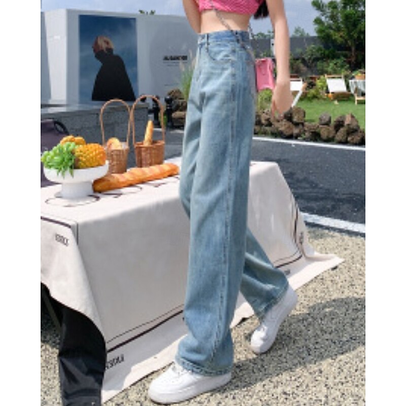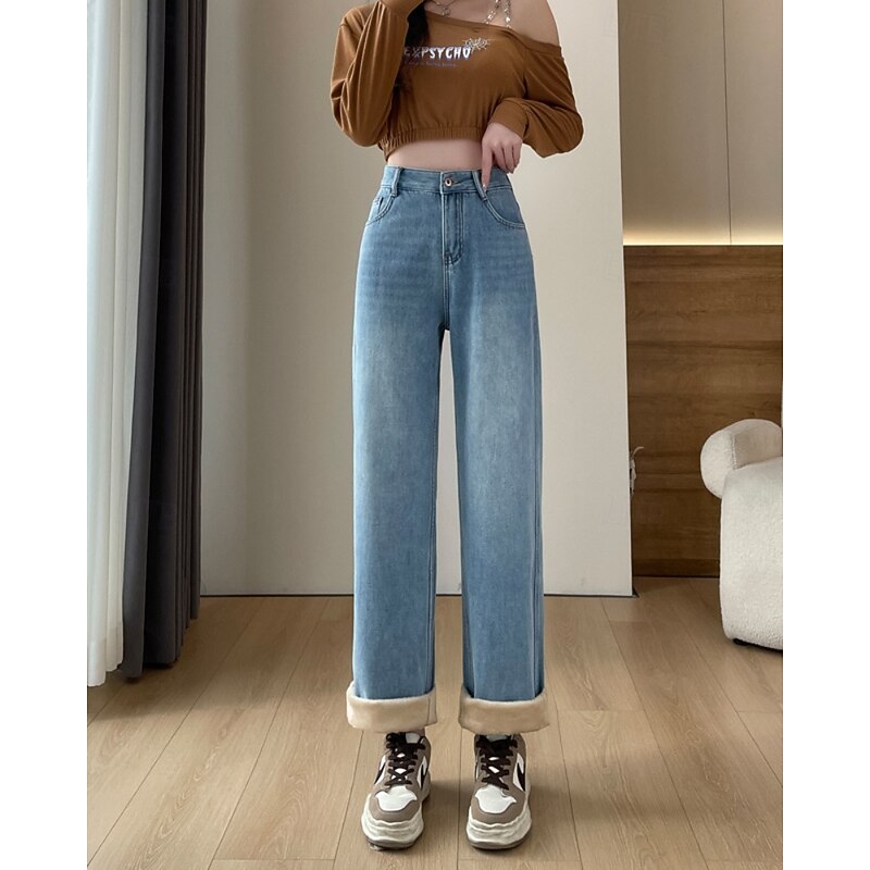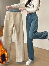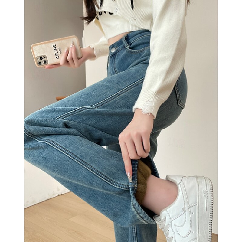 More information about Women's Jeans Wide Leg Chinos Vacation Vintage Streetwear Full Length Medium Waist Plain Pocket Elastic Waist Warm Inelastic Micro-elastic Outdoor Vacation Street Deep Blue Light Blue Summer Spring