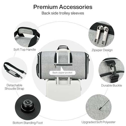 More information about MILADA Convertible 2-in-1 Garment Duffel Weekender Bag Carry On Garment Bags for Travel Hanging Clothes Suit Bag Foldable Personal Item Business Overnight Bag with Shoe Compartment, Light Grey