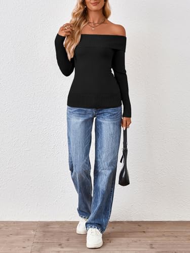 HOT ! Trendy Queen Off The Shoulder Sweater for Women Cute Fall Going Out Tops Pullover Knit 2025 Sexy Date Night Outfits