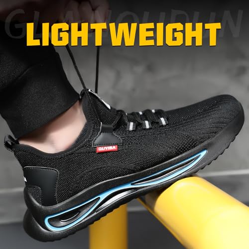 GLANOUDUN Steel Toe Shoes for Men Lightweight Work Shoes for Men Black Steel Toe Sneakers Comfortable Safety Tennis Sneakers Indestructible Men's Safety Footwear Industrial Construction 6