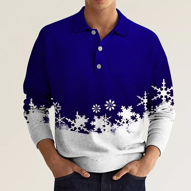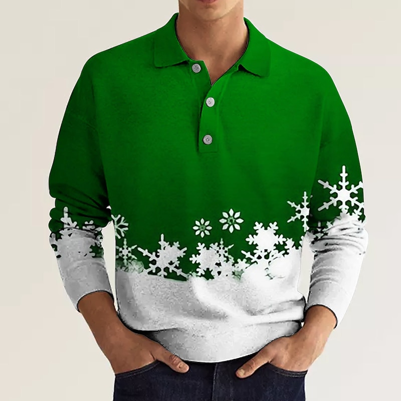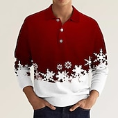 More information about Christmas Men's Christmas Scene 3D Polo Xmas Golf Graphic Prints Snowflake Turndown Wine Blue Brown Green Gray 3D Print Street Casual Long Sleeve Button-Down Print Clothing Apparel Fashion