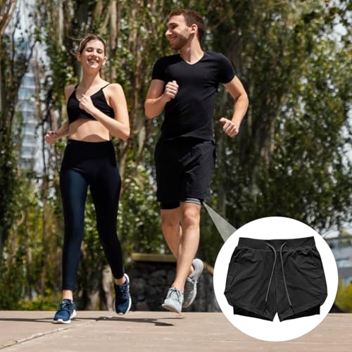 HOT ! Men’s 2 in 1 Running Shorts, Soft Breathable Quick-Drying Workout Gym Athletic Shorts with Zipper Pockets and Towel Loop