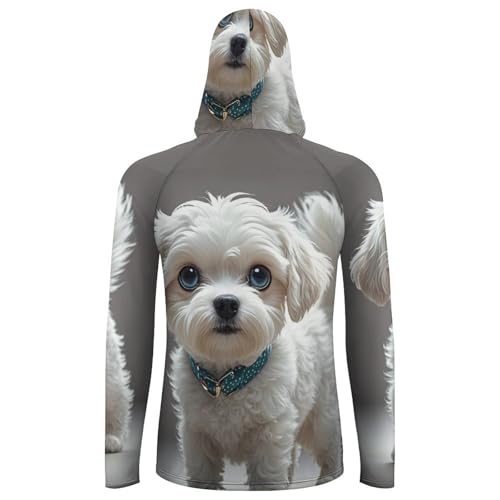 HOT ! UPF 50+ Fishing Shirts for Men Sun Protection Hoodie Cute Dog Sun Hoodie Mens Rash Guard Long Sleeve Shirts