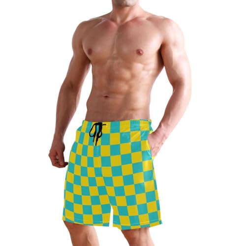Yellow and Teal Buffalo Checkered Mens Swim Trunks Quick Dry Beach Shorts with Pocket S 6