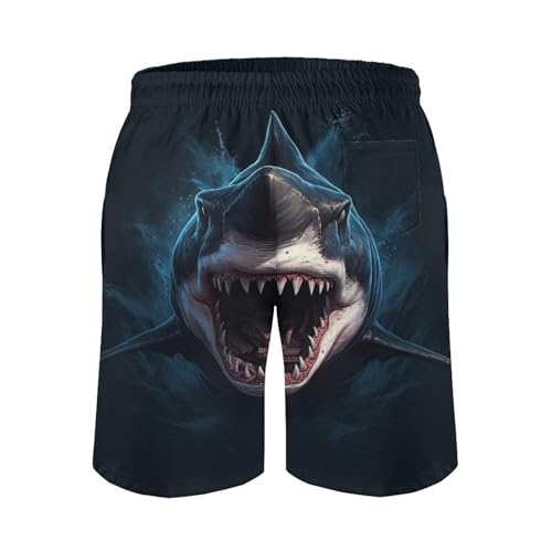 HOT ! Men's Sharks Swim Trunks, Quick Dry Beach Board Shorts with Mesh Lining and Pockets