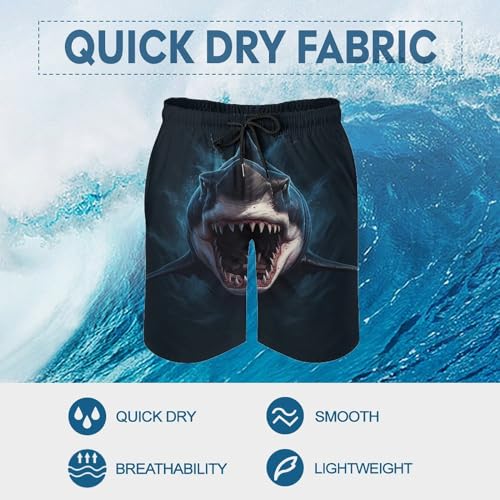 Men's Sharks Swim Trunks, Quick Dry Beach Board Shorts with Mesh Lining and Pockets 5