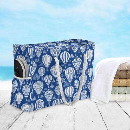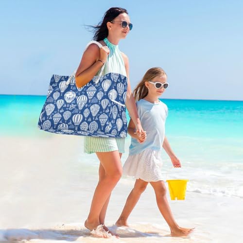 Hot Air Balloon Pop Navy Blue Portable foldable beach bag with zipper womens tote bags Good for Travel Pool Swim Beach Vacation Necessities 5