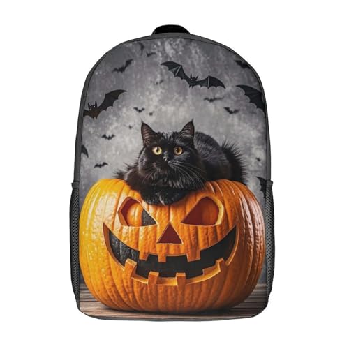 HOT ! 17 Inch Backpack for Travel, Pumpkin Face Print Modern Backpack Shoulder Bag with Adjustable Straps, Side Pockets & Reinforced Bottom