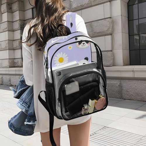 Girls Backpack for Kids Cute Panda White Daisies Purple Clear Backpack for Women See through Shoulder Bag 4