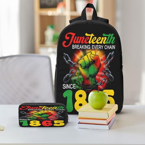 HOT ! Juneteenth Breaking Every Chain Since 1865 17 Inch Backpack Sets Lunch Bag Lightweight Daypack for Men Women 3Pcs