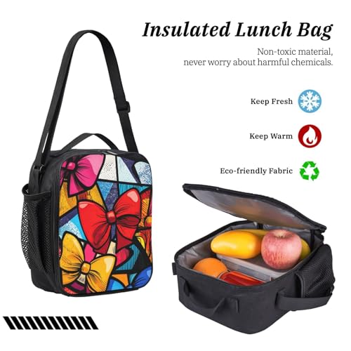 • Reusable lunch bag: three-layer insulated design to keep food fresh. Includes an elastic strap for utensils, one main compartment with 4 inner pockets, a right-side exterior pocket, and an adjustable shoulder strap for easy carrying.