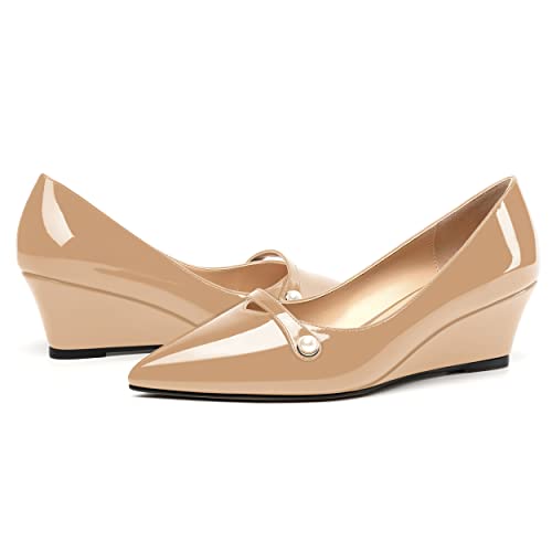 ROSERWISH Womens Patent Pointed Toe Wedding Slip On Fashion Work Wedge Low Heel Pumps Shoes 2 Inch 7