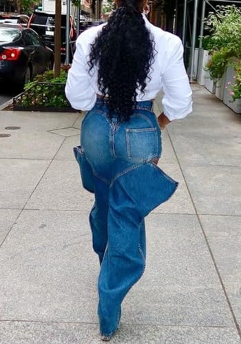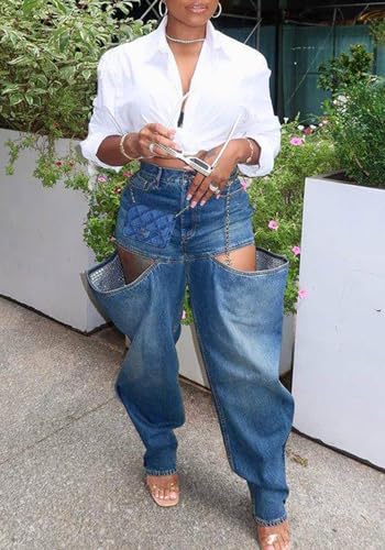 More information about Unybwonn Women's Distressed Denim Pants High Waist Stretch Baggy Jean Straight Wide Leg Cargo Pants with Pockets