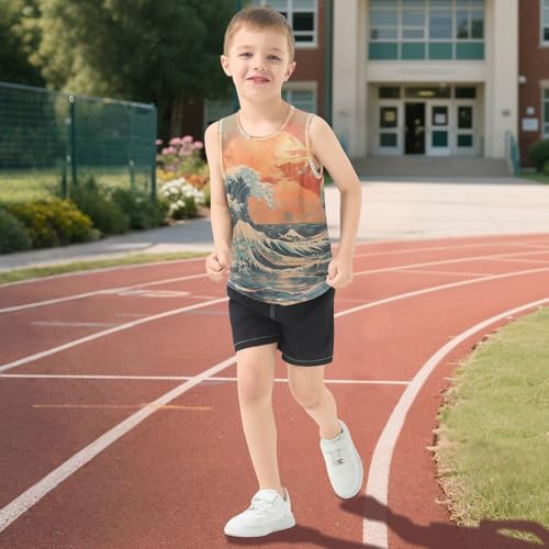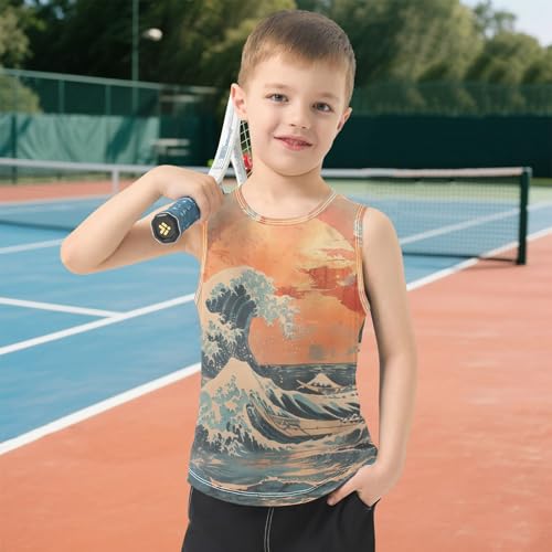 susiyo Vintage Japanese Wave Sunset Boys Sleeveless Tank Top Girls Athletic T Shirt 4