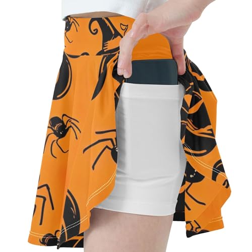 Girls Skorts Athletic Shorts Tennis Skirts Kids Summer Pleated Skort Halloween Black Pumpkins Witch Hats 3t 7