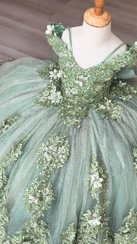 Off Shoulder 3D Flower Girl Dresses with Bow for Wedding Lace Kids First Communion Dress Puffy Tulle Girls Ball Gown 4