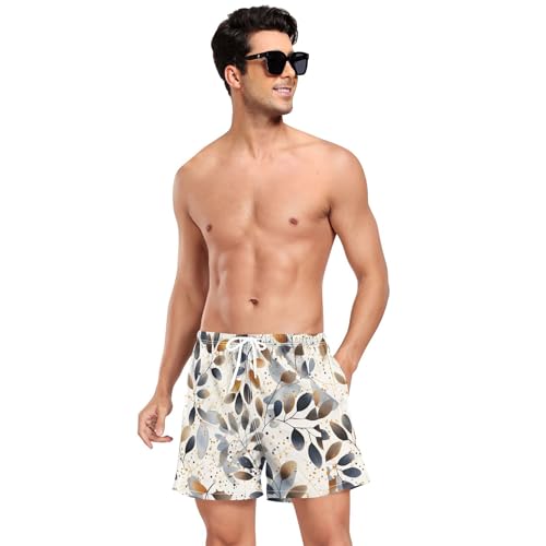 HOT ! xigua Colorful Leaves Mens Swim Trunks with Liner, 5 inch Quick Dry Mens Boardshorts for Beach
