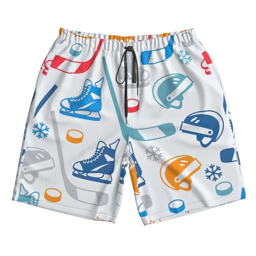 More information about Hockey Elements Creative Patterned Print Mens Casual Shorts Drawstring Summer Beach Stretch Shorts Novelty Swimtrunks