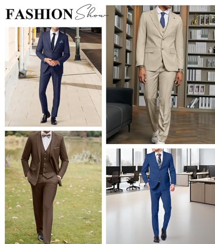 Men's 3 Piece Slim Fit Suit Set 2 Button Dress Suits Formal Tuxedo Blazer Jacket Vest Pants Set 7