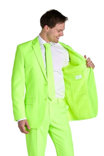 HOT ! Opposuits Neon Colored Suit for Men - Neon Theme Party Outfit - Slim Fit - Including Jacket, Pants & Tie - Green