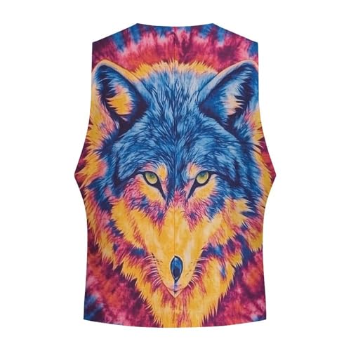 Tie Dye Pattern of Wolf Men's Suit Vest Slim Fit V-Ncek Waistcoat Business Casual Vest 1
