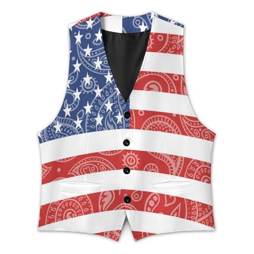 U.S. Flag Paisley Pattern Novelty Men's Suit Vest Funny Formal Dress Vests Business Waistcoat 1