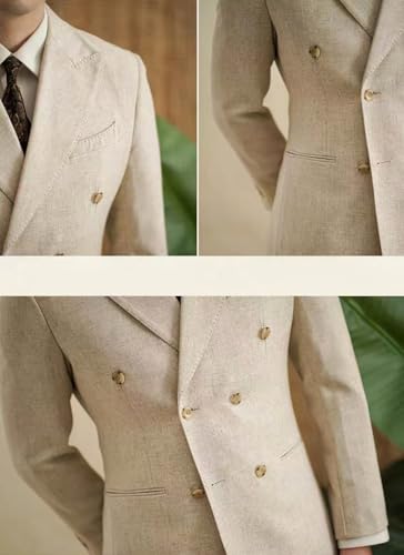 Men's Linen Blazer Slim Fit Double Breasted Suit Jacket Casual Sports Coat for Business Wedding Prom Formal Events Party 4