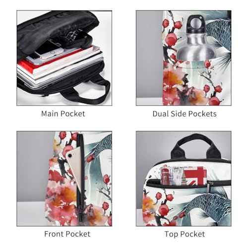 Casual Backpack for Women Men Watercolor Flower Fish Ink Lightweight Daypack Large Capacity Nurse Bag 4