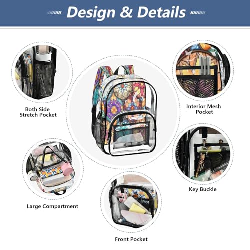 Colorful Oriental Textile Tile Clear Backpack - Stadium Approved Large 15.7-inch Waterproof Transparent Bag for Sports, Concerts, Work, Travel#272 4