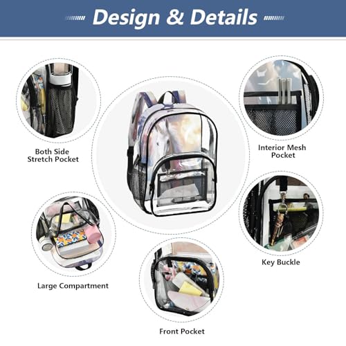 • Ergonomic Comfort – The heavy-duty clear backpack includes padded, adjustable shoulder straps with reinforced stitching for extra support. Wider straps distribute weight evenly, reducing shoulder strain during long wear.