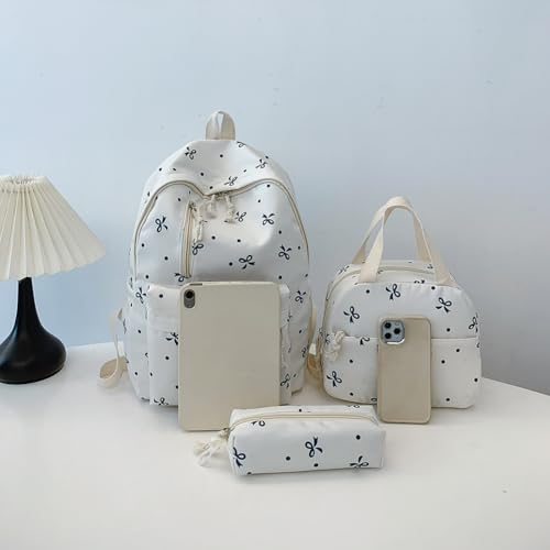 HOT ! Bow Backpack for Women Aesthetic Travel Daypack for Women Bow Rucksack 3Pcs Set Kawaii Coquette Nylon Rucksack