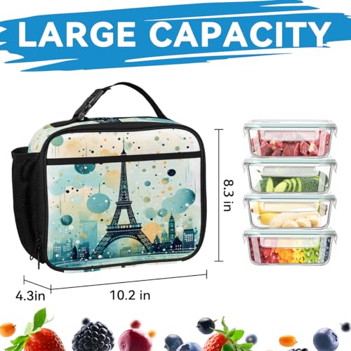 TropicalLife France Eiffel Tower Backpack with Lunch Box Set, Back Pack and Lunch Bag France Eiffel Tower Waterproof Casual Daypack Bag for Work Travel 4