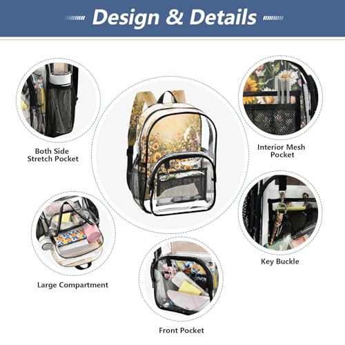 Whimsical Garden Sunflowers Clear Backpack - Stadium Approved Large 15.7-inch Waterproof Transparent Bag for Sports, Concerts, Work, Travel#167 7