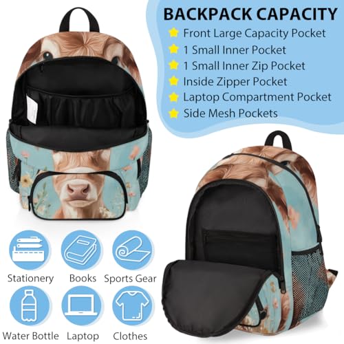 TropicalLife Cow Backpack with Lunch Box Set, Back Pack and Lunch Bag Cow Waterproof Casual Daypack Bag for Work Travel 5