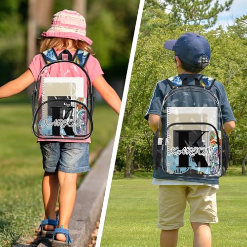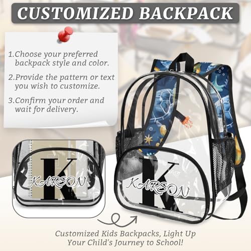 • PERSONALIZED CLEAR BAG: Each clear backpack strap is printed with exquisite patterns. Various patterns are available for you to choose from. Please click the "Customize Now" button and enter the name you want to customize