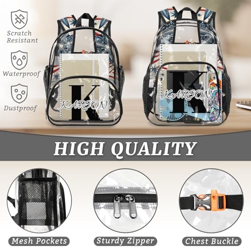 • PERSONALIZED CLEAR BAG: Each clear backpack strap is printed with exquisite patterns. Various patterns are available for you to choose from. Please click the "Customize Now" button and enter the name you want to customize