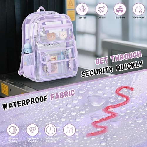 Large Clear Backpack Transparent Heavy Duty School PVC Bookbag See Through Bag Boys and Girls for College Work Travel Security, Purple 7