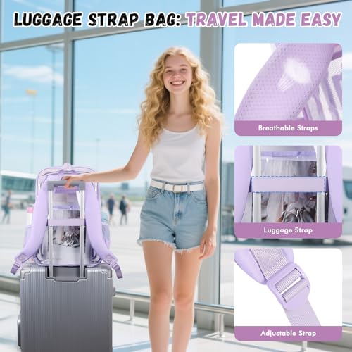• Swift Security Checks & Travel Ready: The fully transparent design of this clear backpack allows security to inspect contents instantly, speeding entry into stadiums, airports, and schools. A built-in luggage strap slides over suitcase handles, making travel to concerts or family trips effortlessly hands-free